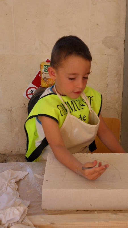 Sans aucun doute, l’atelier sculpture rencontre le plus franc succès cette année… De 4 à 12 ans, les enfants découvrent la magie de l’alginate, cette drôle de matière à base d’algues permettant de réaliser un moule tout mou et à usage unique… Quant à la gravure, l’exercice est délicat mais c’est avec grande attention et soin que nos petits participants s’adonnent à la tâche… Résultats garantis !